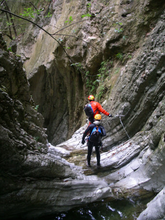 Cmq a parte l?ironia di cui siamo sempre piacevolmente prodighi tra noi, la forra mi ? piaciuta, anche se presentava uno scorrimento minimo. Infatti nonostante fosse copiosamente piovuto domenica e forse anche luned? (io ero in zona Pieve Sante Stefano - AR) all?inizio la forra pisciava appena e al termine lo scorrimento sar? stato di 3 l/s, ma le pozze erano piacevolmente limpide.
